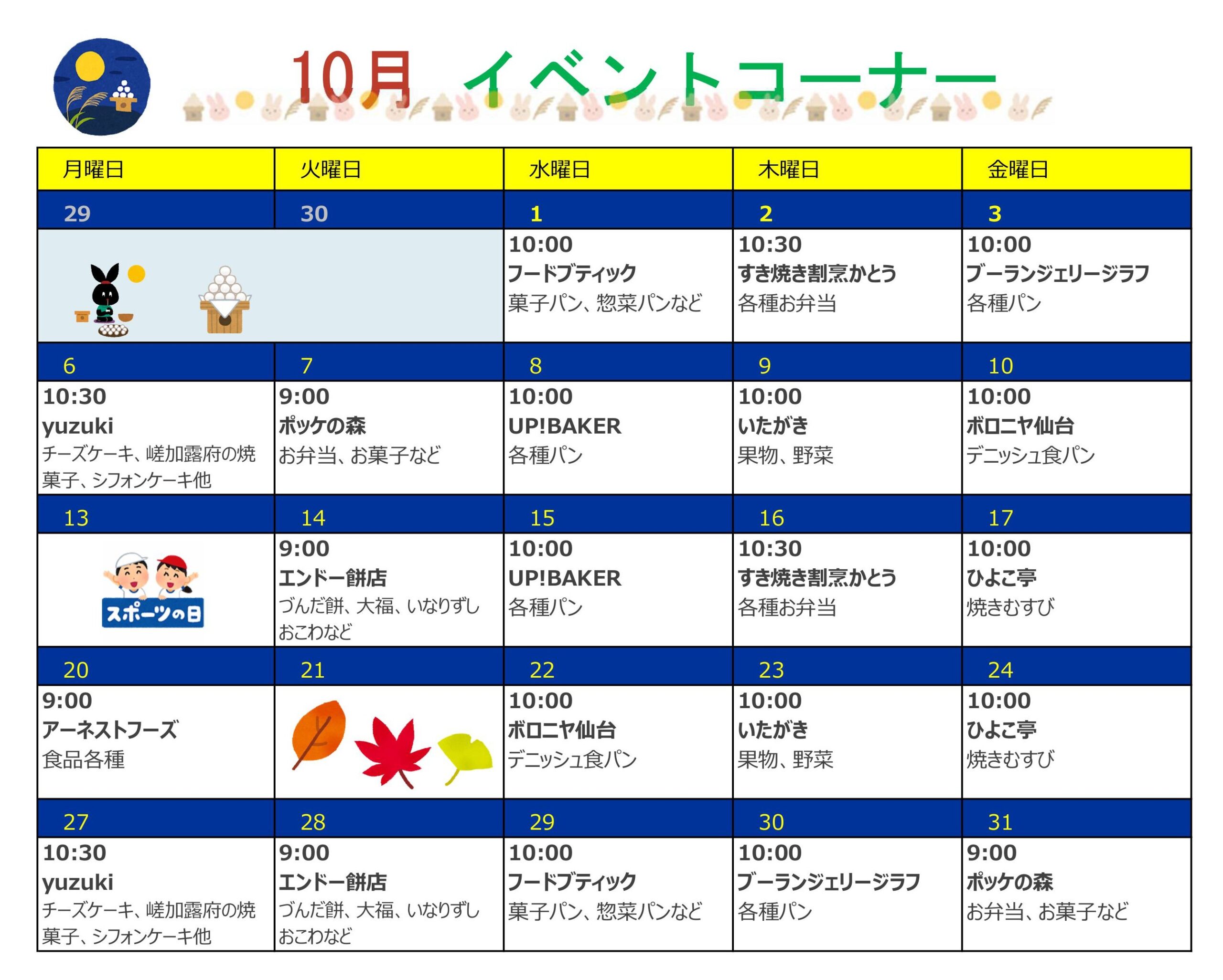 (イベントコーナー)10月の出店予定