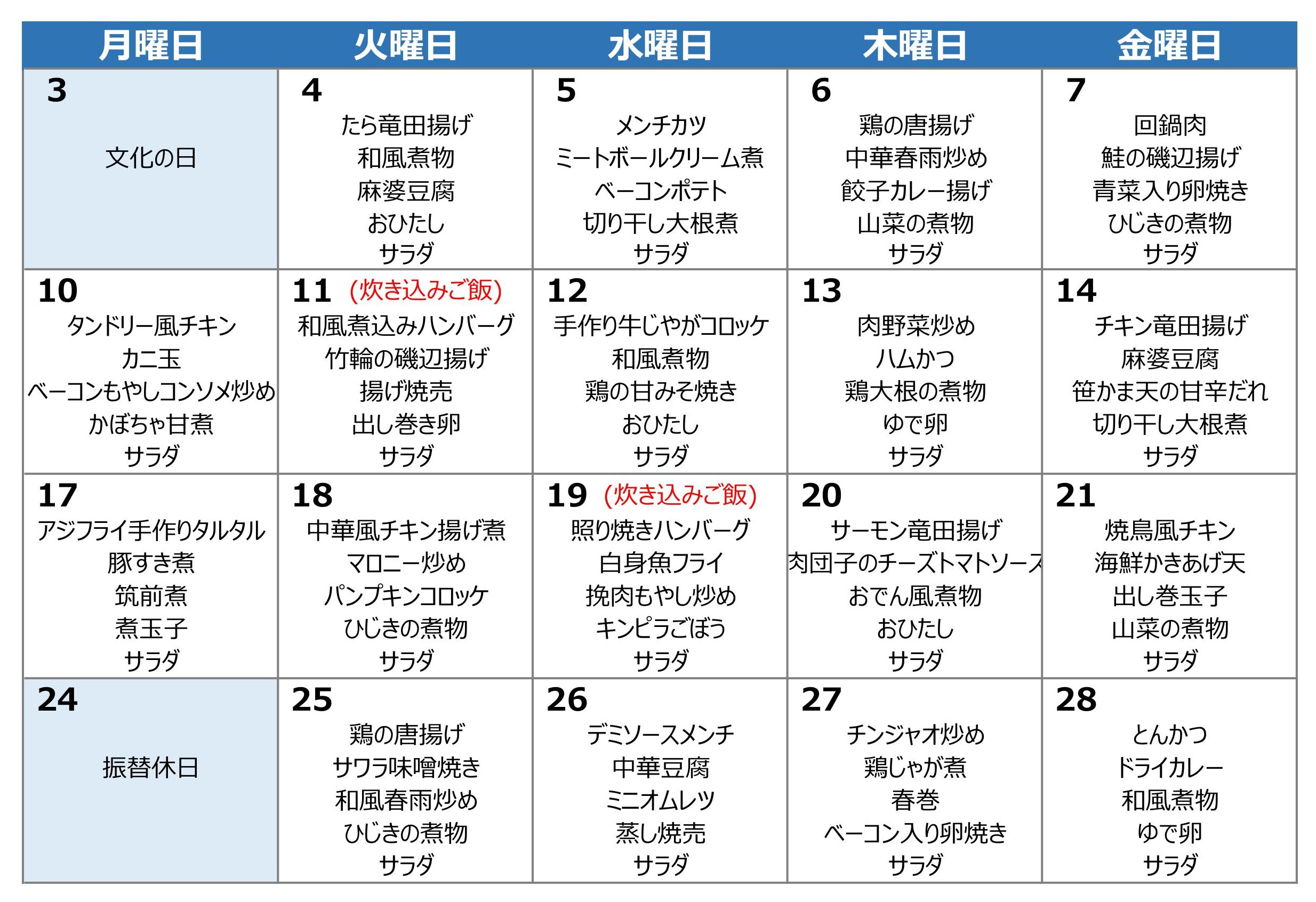(メディカルショップより)11月の日替り弁当メニューのお知らせ