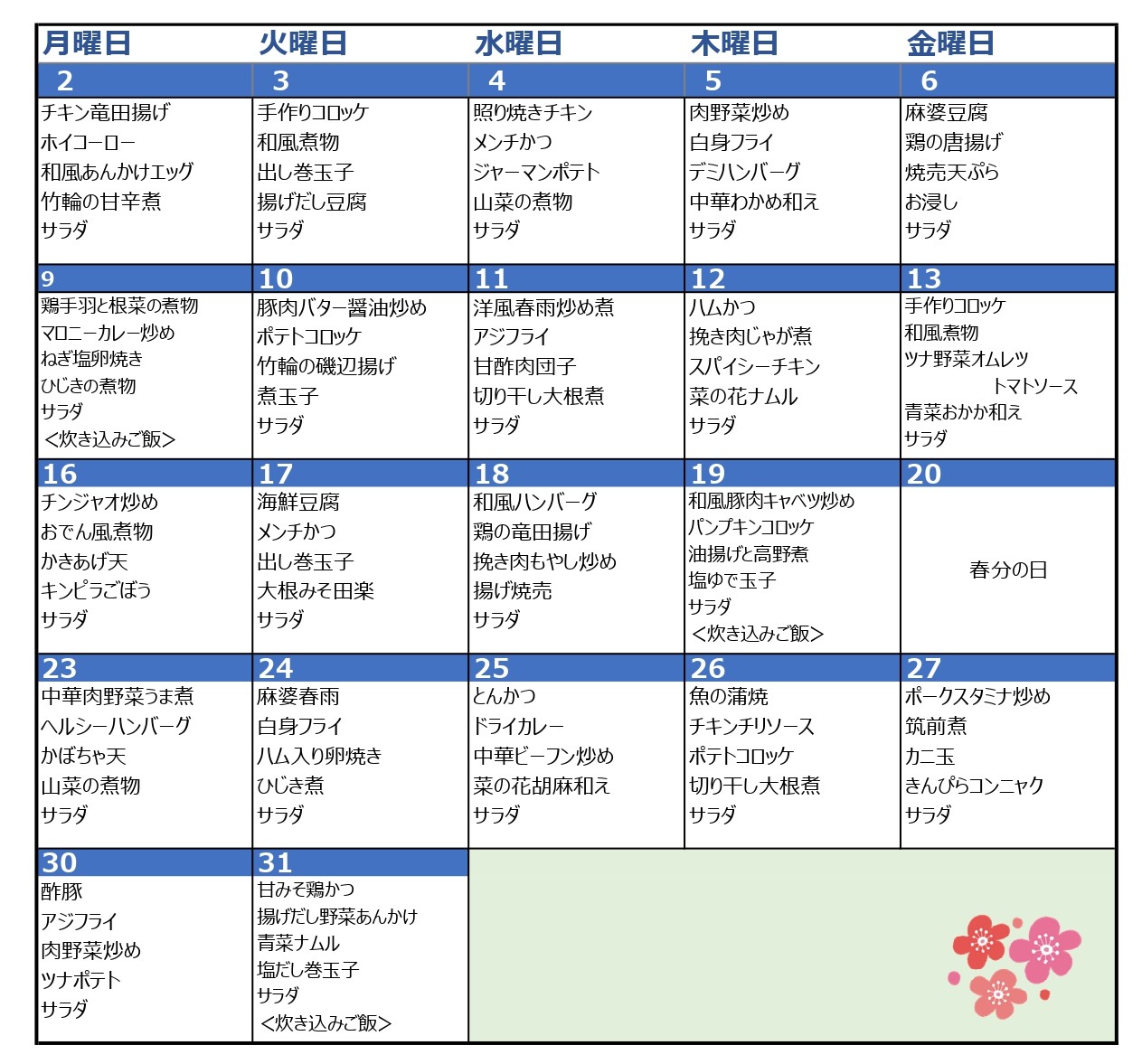 (メディカルショップより)3月の日替り弁当メニューのお知らせ