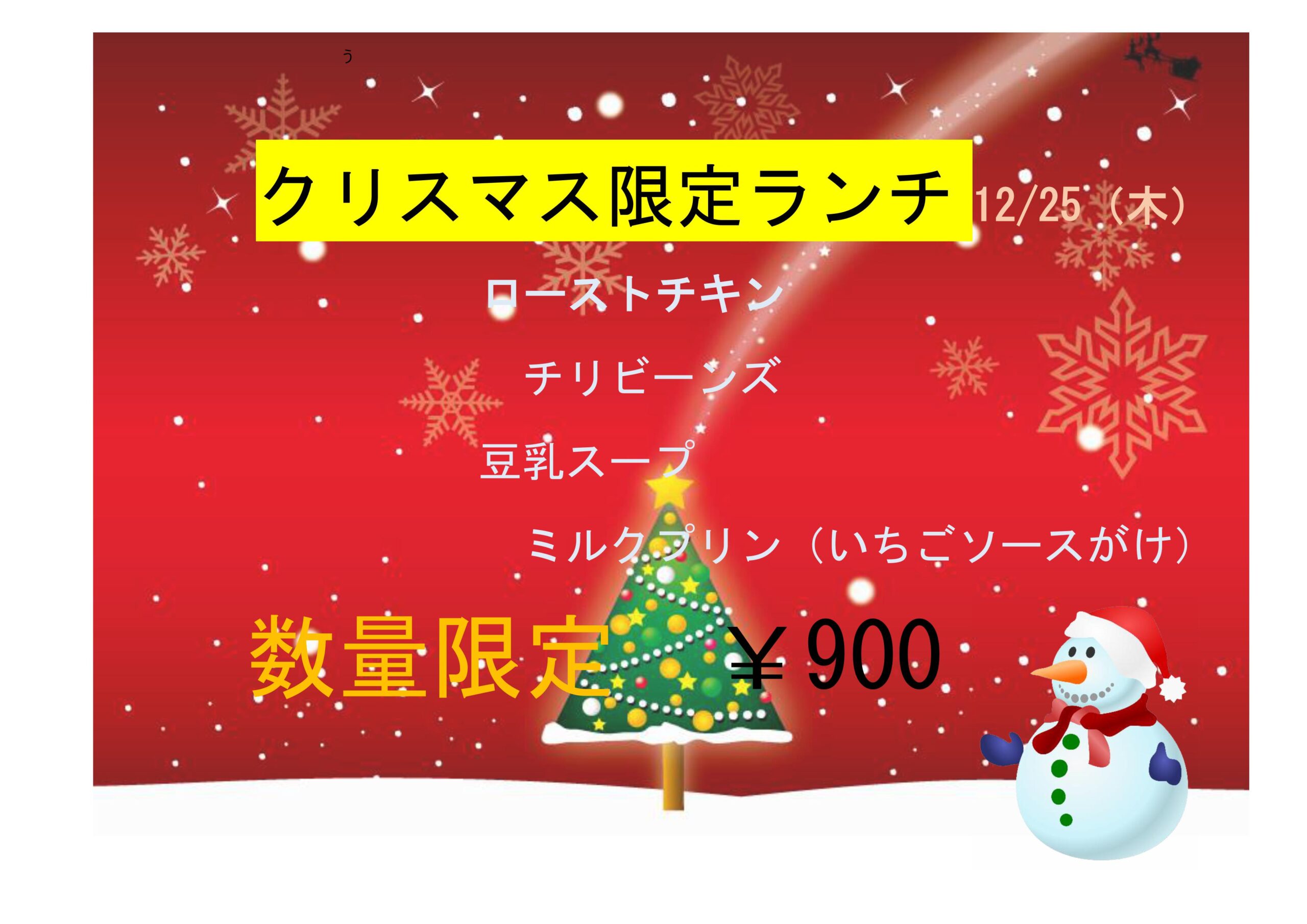 (食堂より) 12/25(木) クリスマス限定ランチ(数量限定)のお知らせ